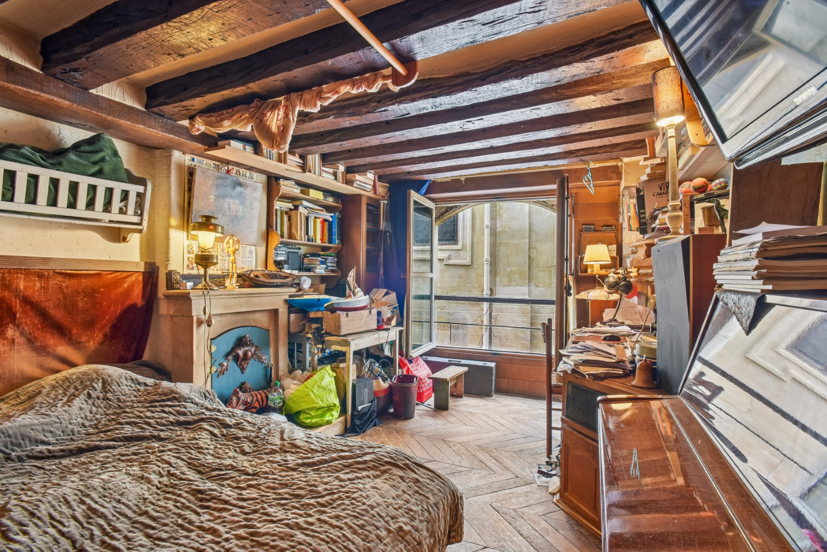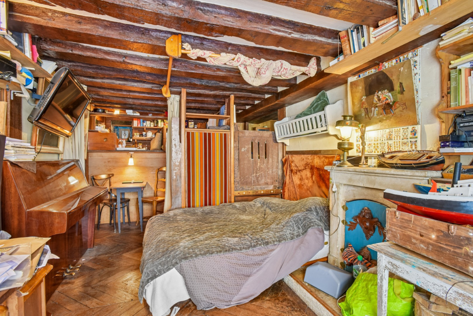 Paris (75004)Studio au 1er étage sans ascenseur donnant sur l'Ille Sant Louis au numéro 22. Tout est à rénover. Disponible de suite. Cave.