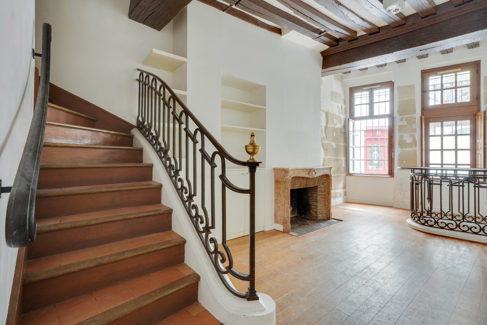 Paris (75005)Duplex ( 120m² au sol) en rez-de chaussée et 1er étage sur rue et cour avec 3 chambres, 1 séjour, 1 cuisine séparée, 3WC, 2 salles d'eau, 1 réserve en sous-sol reliée. Volumes, sectorisé Henri IV, professions libérales acceptées.Vendu loué, fin de bail, juillet 2027.